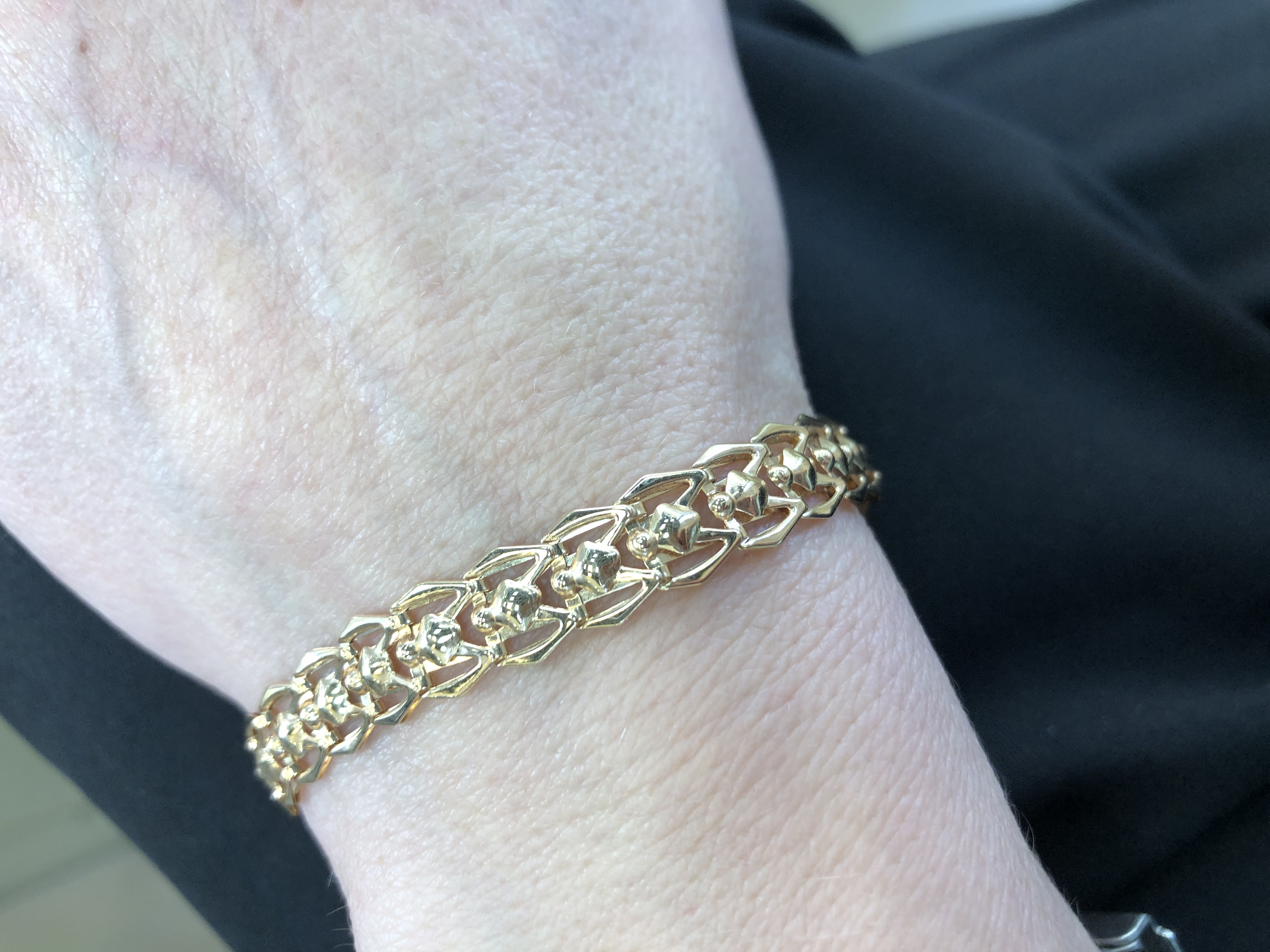 Элегантный браслет из красного золота 585 пробы с ажурным фантазийным плетением — это украшение, которое станет идеальным дополнением к вашему образу