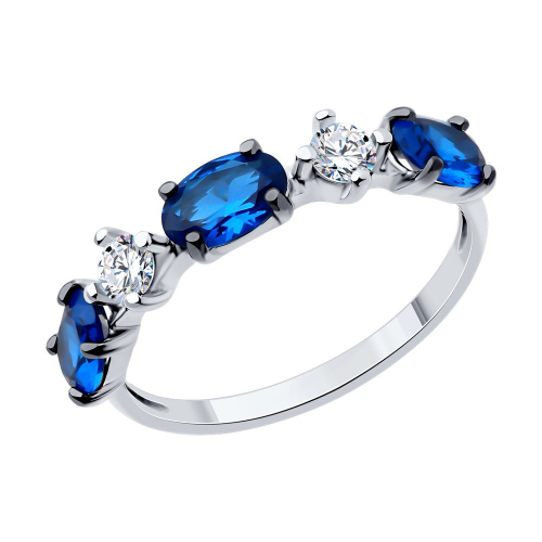 Стильное кольцо выполнено из серебра 925 пробы с синим и белыми фианитами. Серебро - это классика ювелирного искусства, кольцо из этого благородного металла всегда смотрится элегантно и изысканно. Кольцо имеет утонченный, но ярко выраженный дизайн, делающий его неповторимым и эффектным. Изделие дополнительно покрыто родием - металл платиновой группы, который защищает от внешних воздействий и придает искрящийся яркий блеск. Бренд SOKOLOV. В комплект поставки входит: