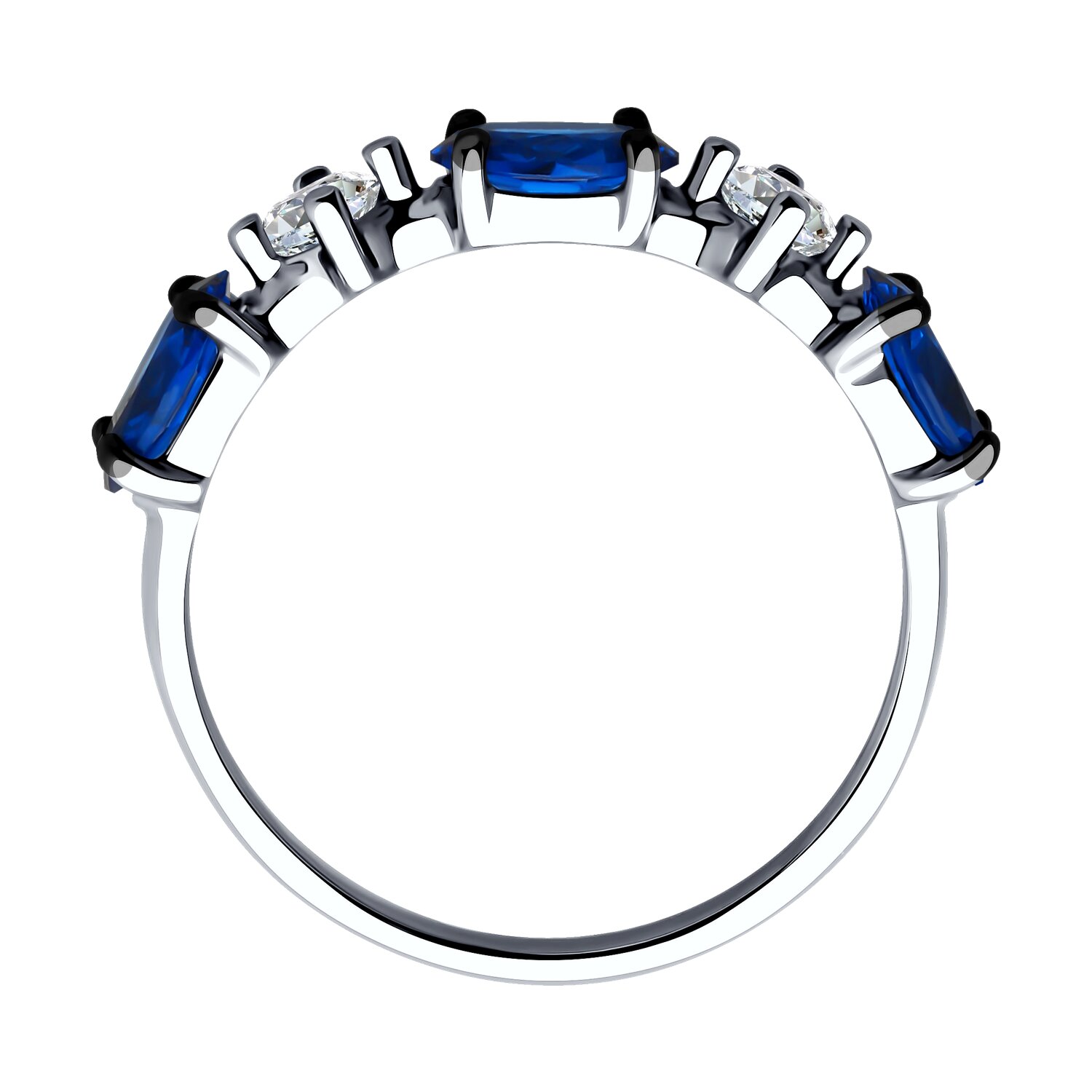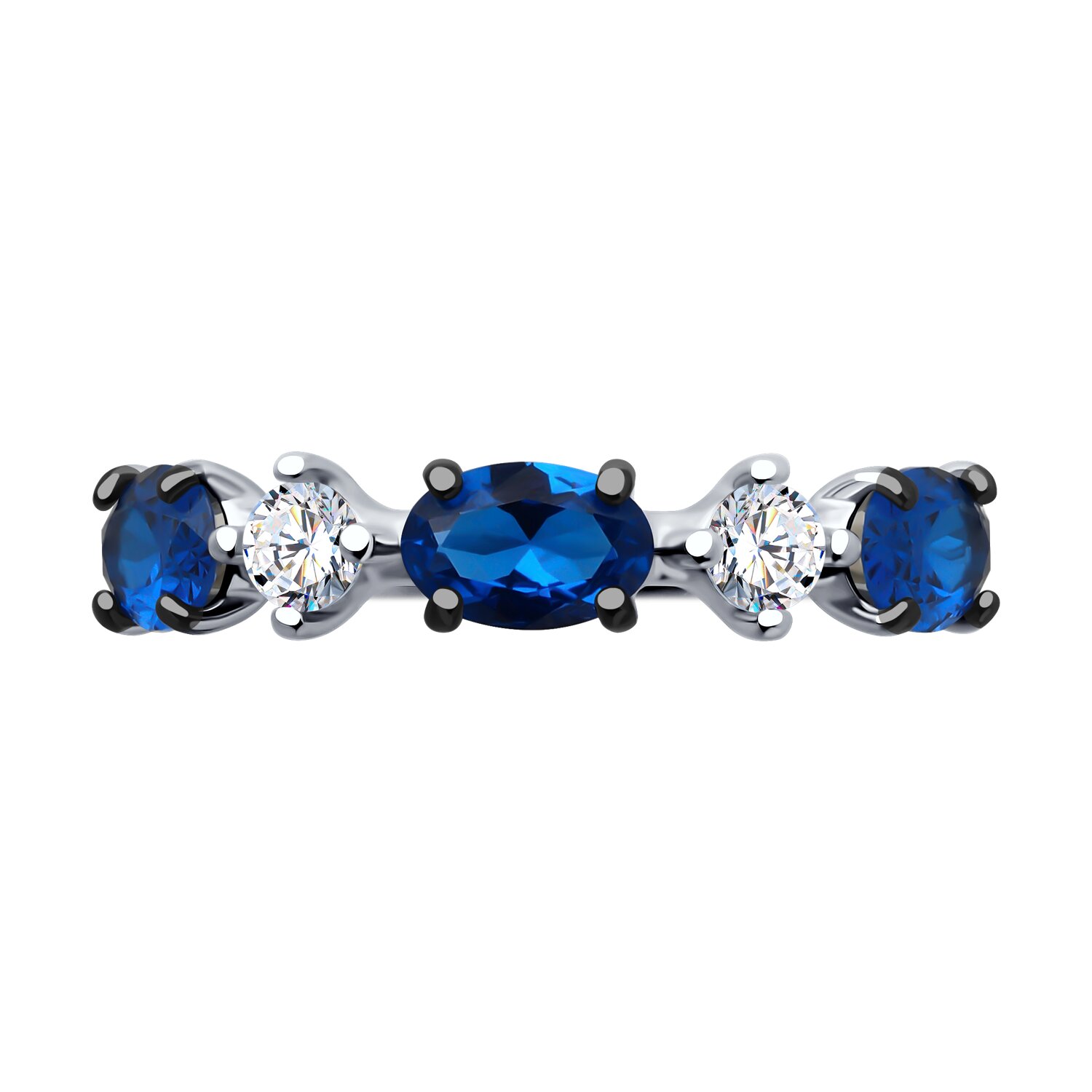 Стильное кольцо выполнено из серебра 925 пробы с синим и белыми фианитами