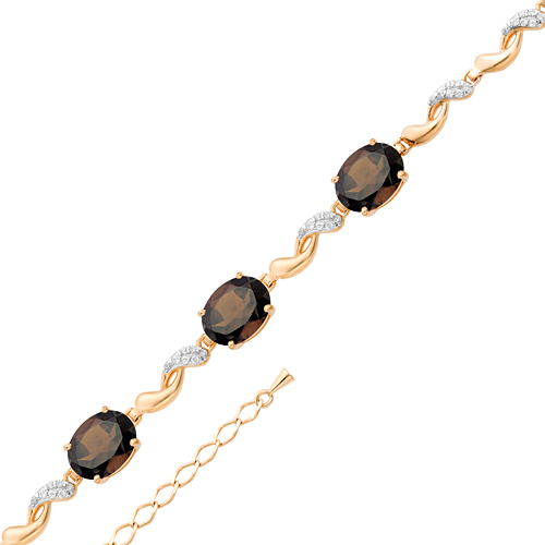 Элегантный женский браслет выполнен из красного и белого золота 585 пробы, украшен раух -топазами и яркими фианитами