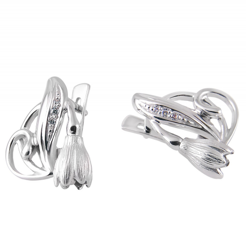 Нежные серьги, в виде подснежника, выполнены из серебра 925 пробы, украшены сверкающими фианитами Сваровски.