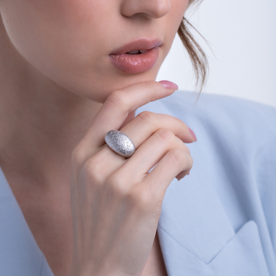 Кольцо из серебра 925 с родием отличается ярким дизайном и удобством в носке