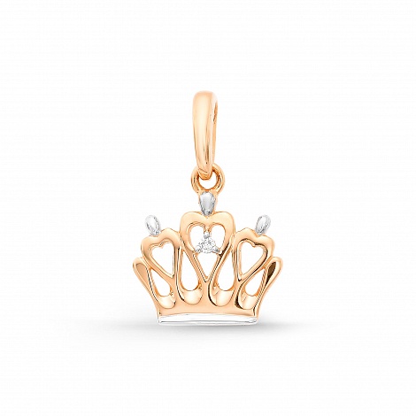 Оригинальная подвеска в виде короны с бриллиантом из красного золота 585 пробы, от бренда Алькор.
