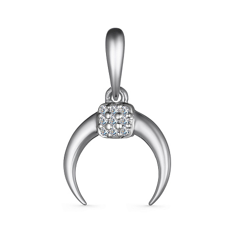 Подвеска современного дизайна выполнена из белого золота 585 пробы, украшена россыпью сияющих бриллиантов