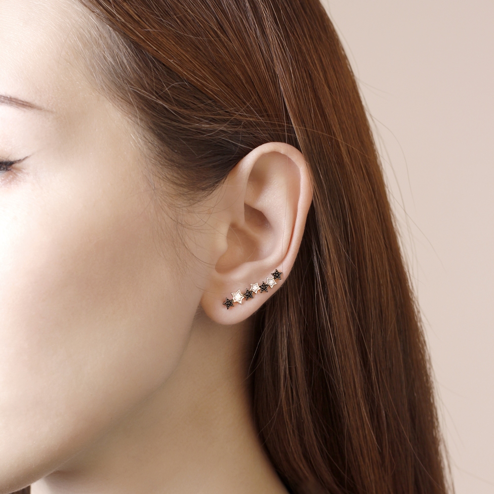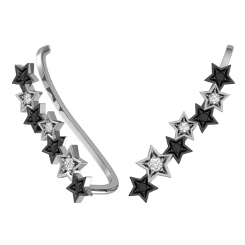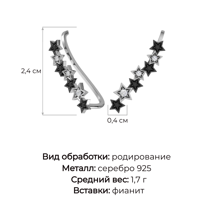 Серьги-каффы с черными и белыми фианитами выполнены из родированного серебра 925 пробы