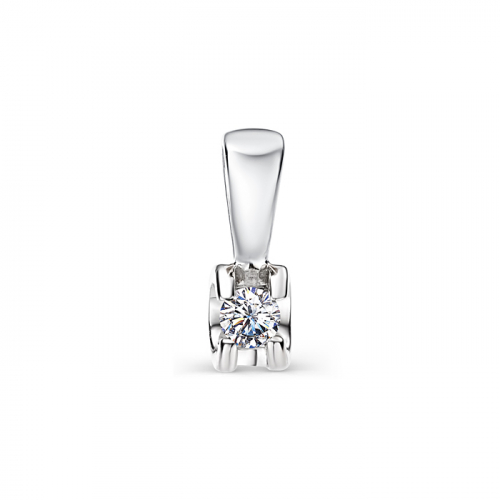 Подвеска из белого золота 585 пробы и украшено бриллиантом круглой огранки 57 граней, которая раскрывает полностью красоту и мерцание драгоценного камня