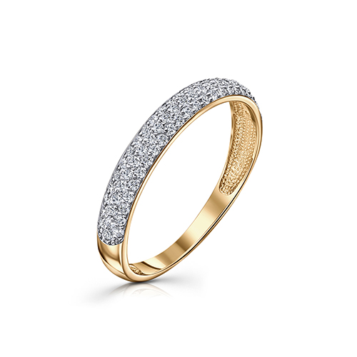Лаконичное кольцо-дорожка выполнено в классическом стиле в сочетании красного и белого золота 585 пробы с россыпью фианитов
