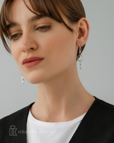 Стильные, удлиненные серьги-пусеты геометричного стиля, выполнены из серебра 925 пробы. Длинные серьги – украшение, способное любому образу придать элегантность и женственность. Изделие покрыто родием- метелл платиновой группы, придает блеск. Тип замка - пусет, самый надежный и комфортный. Бренд КРАСЦВЕТМЕТ. В комплект поставки входит: