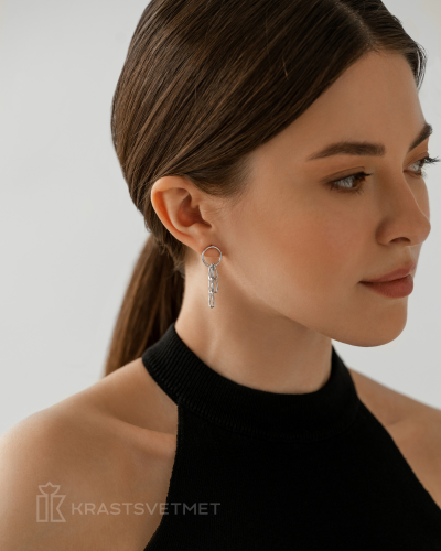 Стильные серьги-пусеты выполнены из серебра 925 пробы и покрыты родием, который защищает украшение от внешних воздействий и долго сохраняет первоначальный внешний вид