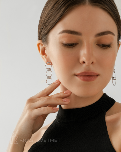 Стильные серьги-пусеты,в форме трех колец выполнены из серебра 925 пробы и покрыты родием, который защищает украшение от внешних воздействий и долго сохраняет первоначальный внешний вид