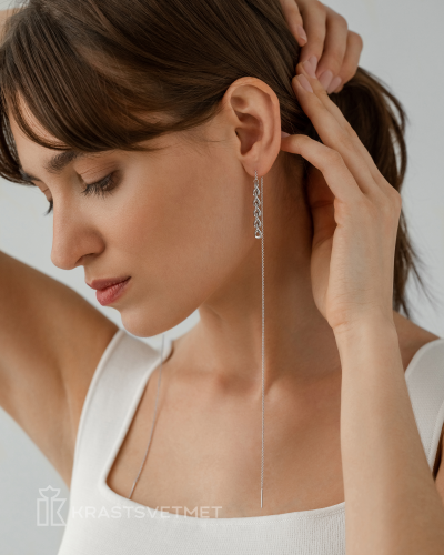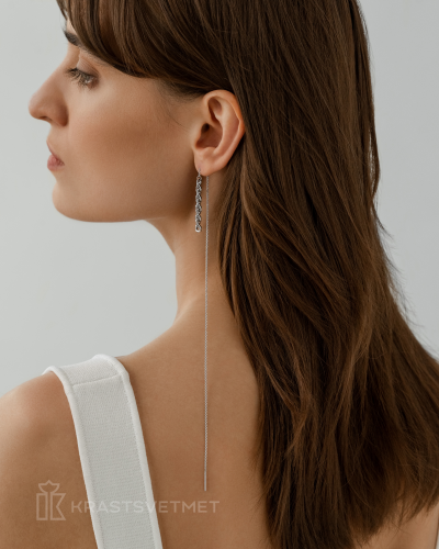 Современные серьги-протяжки с акцентом на панцирное плетения выполнены из серебра 925 пробы и покрыты родием, который защищает украшение от внешних воздействий и долго сохраняет первоначальный внешний вид. Серьги – символ красоты и элегантности любой женщины. Особый дизайн сережек превращает их в эффектную самостоятельную деталь любого образа. Украшение представлено производителем Красцветмет. В комплект поставки входит: