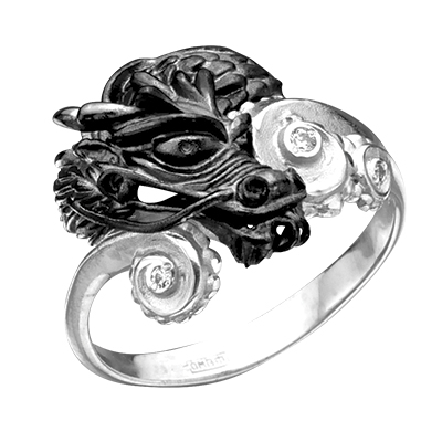 Оригинальное кольцо "Водяной дракон" выполнено в серебре 925 пробы, украшенное блеском фианитов