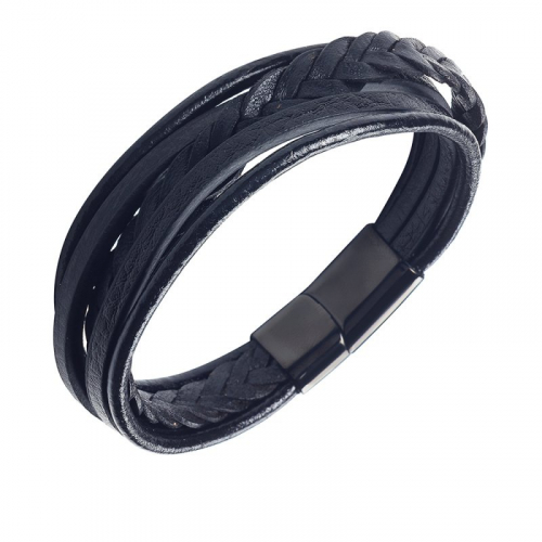 Стильный мужской браслет, выполнен с сочетанием переплетённой кожи, и украшен стальной вставкой