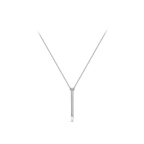 Модное и оригинальное цепочное колье с подвеской в виде гвоздя, украшенной фианитами, выполнено из родированного серебра 925 пробы
