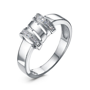 Стильное объемное кольцо, украшенное фианитами, выполнено из серебра 925 пробы