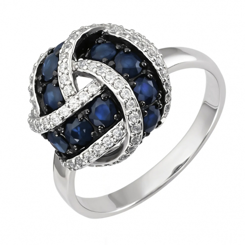 Яркое стильное кольцо выполнено из серебра 925 пробы благодаря покрытию премиальным родием имеет неповторимый платиновый блеск. Родий - металл платиновой группы, который защищает золото от внешних воздействий и придает искрящийся яркий блеск. Галактическая россыпь природных сапфиров в обрамлении фианитов кружится вокруг невидимого центра, притягивая восхищенные взгляды. Изделие представлено брендом "ETHNICA". Средняя характеристика камней: 12 Сапфир 1,4 ct, Фианит. В комплект поставки входит: