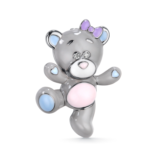 Брошь из серебра 925 пробы. Дизайн украшения в стиле анималистика. Роспись красками эмали голубого и розового цвета делает украшение нежным. Украшение покрыто родием - металл платиновый группы защищает серебро от потемнения, повреждений и придает яркий блеск. Изделие представлено брендом DEWI. В комплект поставки входит: