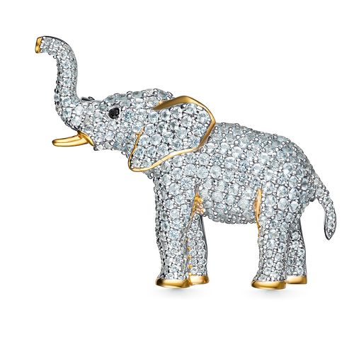 Декоративная брошь в виде слона выполнена из серебра 925 пробы, украшена россыпью сверкающих фианитов