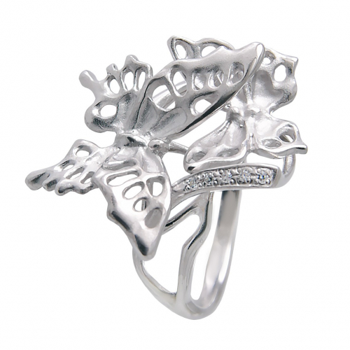 Кольцо, в виде ажурных бабочек, выполнено из серебра 925 пробы, украшено сверкающими фианитами Сваровски