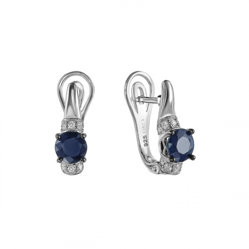 Серьги из серебра 925 пробы с сапфирами и фианитами