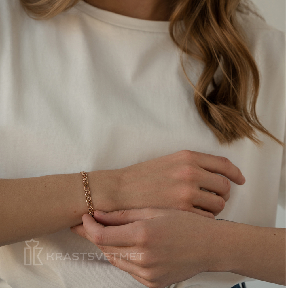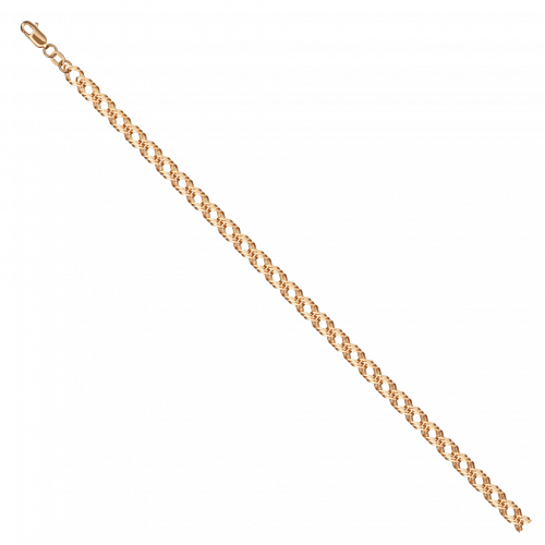 Облегченный браслет из красного золота 585 пробы с утонченным плетением «тройной ромб» украшенный алмазной гранью