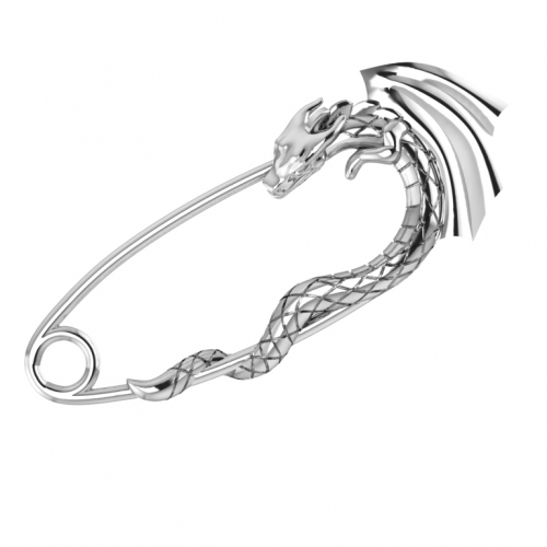 Брошь-булавка в анималистичном стиле выполнена из серебра 925 пробы