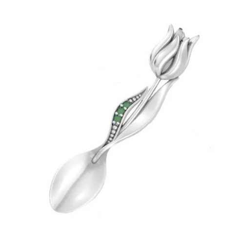 Сувенир в виде ложки Цветок любви выполнен из родированного серебра 925 пробы