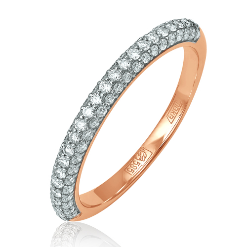 Аккуратное кольцо украшено дорожками сверкающих бриллиантами, выполнено с сочетанием красного и белого золота 585 пробы