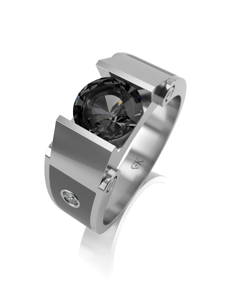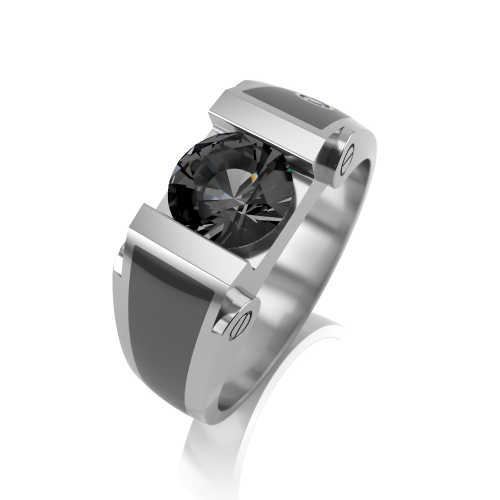 Стильное кольцо-печатка, выполненное из серебра 925 пробы в сочетании с черной керамикой и украшенное фианитами