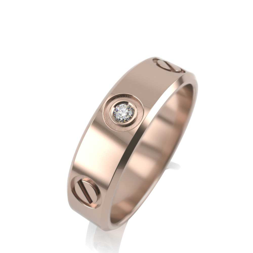 Оригинальное обручальное кольцо из красного золота 585 пробы, украшенное бриллиантом
