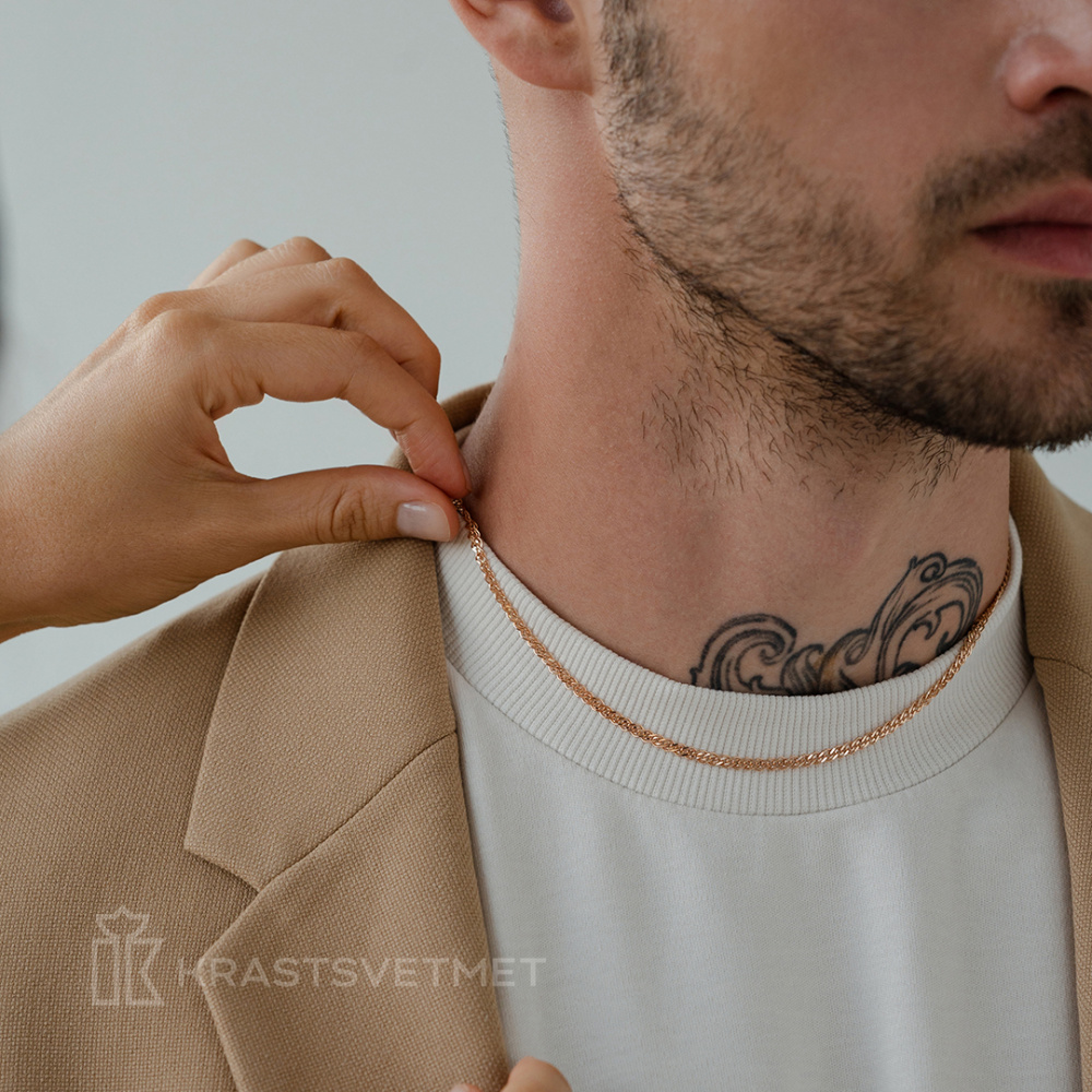 Облегчённая цепь из красного золота 585 пробы с изысканным плетением «Нонна» и роскошной отделкой алмазной гранью