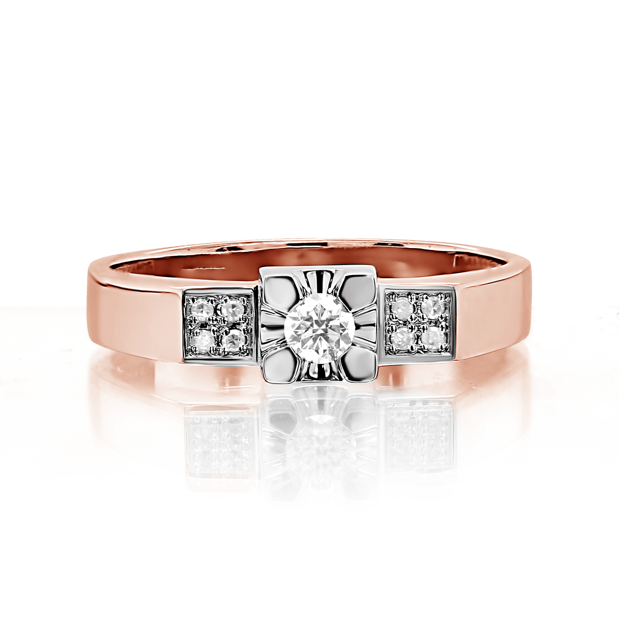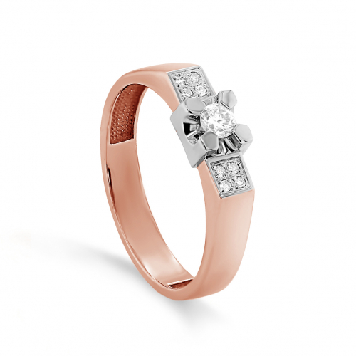 Стильное кольцо выполнено в сочетании красного и белого золота 585 пробы, украшенное ослепительными бриллиантами