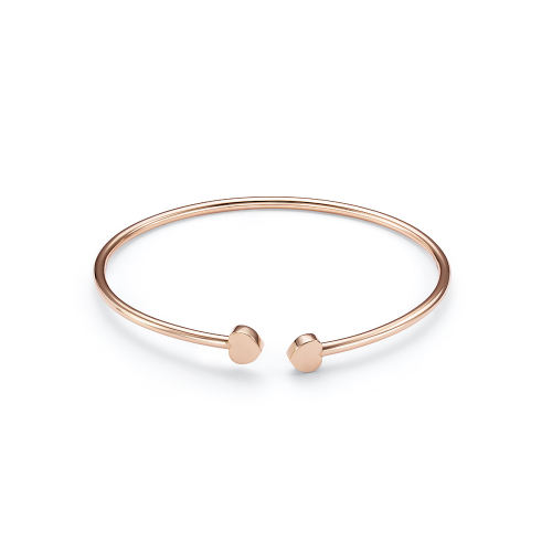 Оригинальный жёсткий браслет без камней в стиле минимализм выполнен из красного золота 585 пробы