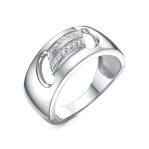 Стильное широкое кольцо, украшенное деликатным блеском фианитов, выполнено из родированного серебра 925 пробы