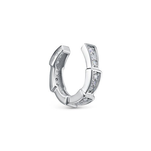 Стильная серьга-кафф, украшенная сверкающими фианитами, выполнена из родированного серебра 925 пробы
