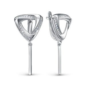 Стильные удлинённые серьги, оригинальный дизайн которых подчёркивают изящные дорожки фианитов, выполнены из родированного серебра 925 пробы