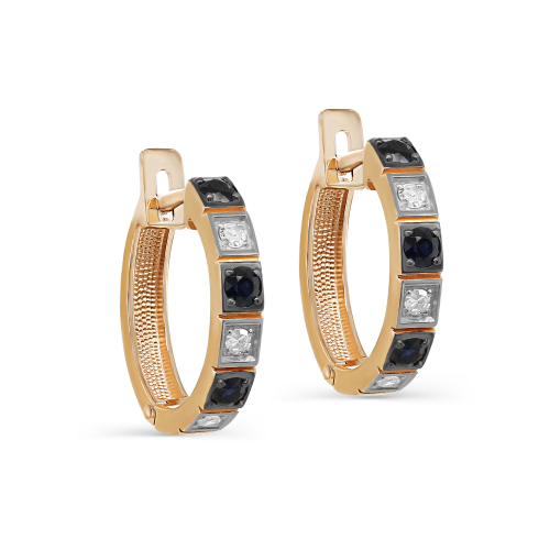 Серьги, комбинированное золото, сапфир, проба 585