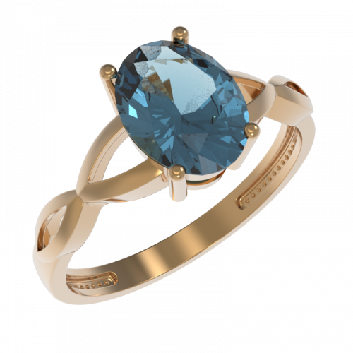 Кольцо с голубым топазом классического дизайна выполнено из красного золота 585 пробы