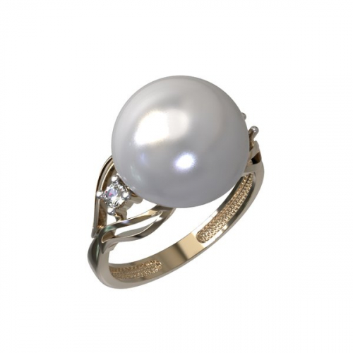 Нежное кольцо выполнено из красного золота 585 пробы, украшено великолепным жемчугом белого цвета и сияющими фианитами