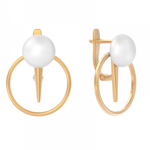 Стильные серьги с оригинальным дизайном выполнены из красного золота 585 пробы, украшены белыми жемчужинами. Тип замка - английский, самый надежный и удобный. Изделие представлено брендом АРИНА. В комплект поставки входит: