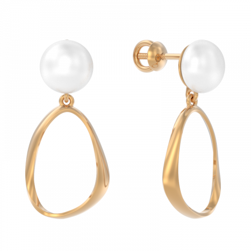 Серьги - пусеты с жемчугом и объёмной подвеской, выполнены из красного золота 585 пробы. Такие серьги могут стать отличным подарком для тех, кто ценит стиль и изысканность. Они подойдет как для повседневной носки, так и для особых случаев, таких как свадьба или юбилей.
