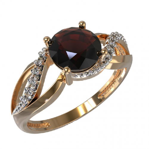 Роскошное кольцо выполнено с сочетанием красного и белого золота 585 пробы, украшенное натуральным гранатом и яркими фианитами