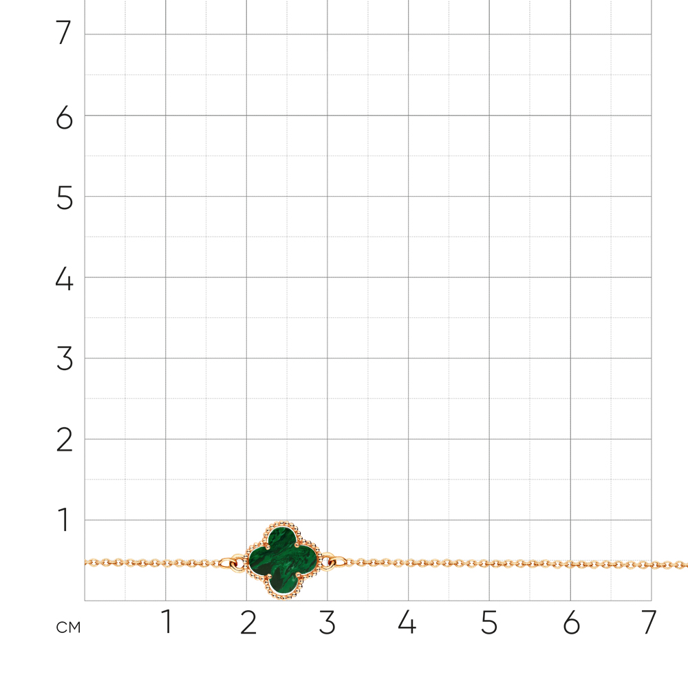 Стильный цепочный браслет на основе классического «якорного» плетения, украшенный выразительной вставкой из сочного малахита, выполнен из красного золота 585 пробы