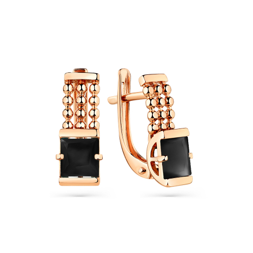 Серьги с чёрной шпинелью выполнены в красном золоте 585 пробы