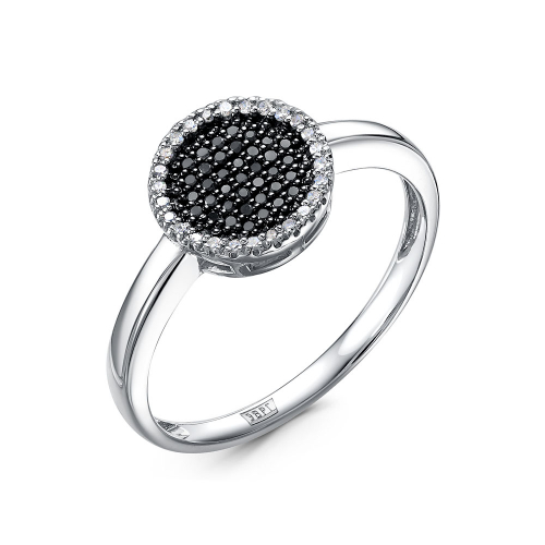 Стильное кольцо с сверкающими чёрными бриллиантами выполнено из белого золота 585 пробы