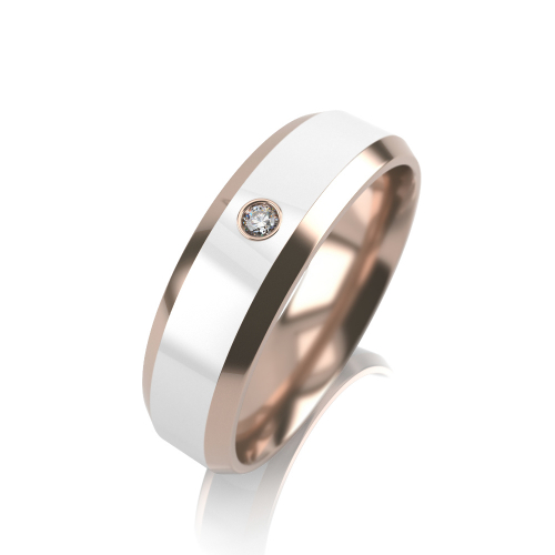 Стильное обручальное кольцо из красного золота 585 пробы, с керамикой белого цвета и бриллиантом