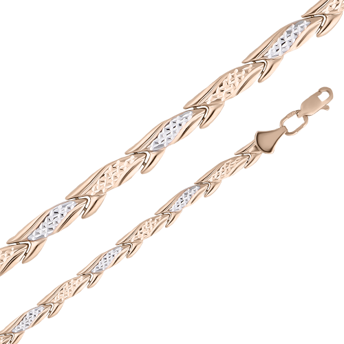 Браслет с ярким и привлекательным дизайном, выполненым с использованием алмазной гравировки. Отличается такой вид обработки особой практичностью. Изделие выполнено из красного и белого золота 585 пробы. От бренда "Магнат". В комплект поставки входит: