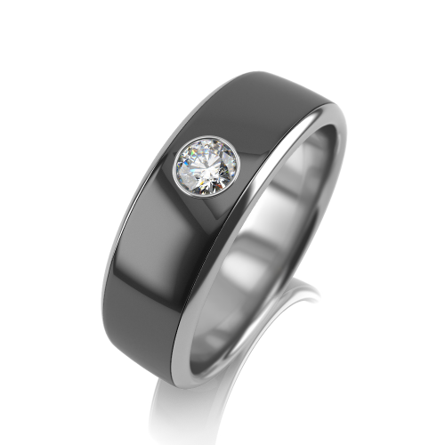 Стильное широкое кольцо изсеребра 925 пробы, с керамикой черного цвета и фианитом