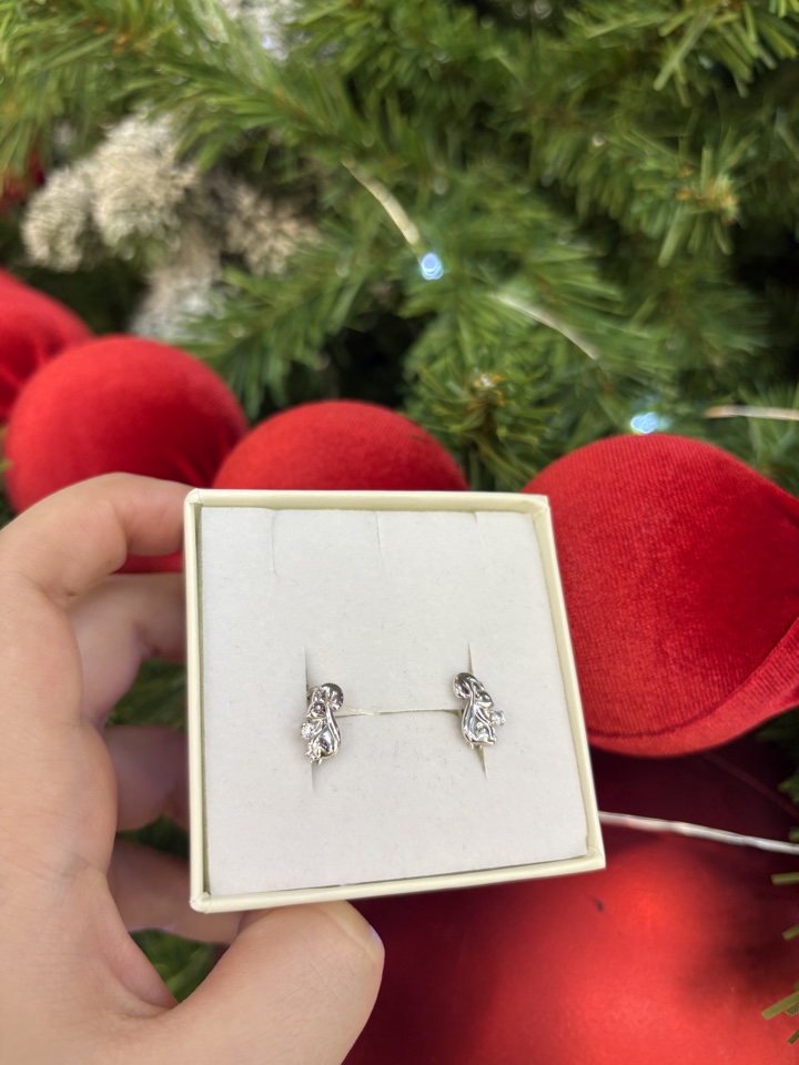 Нежные детские серьги, в виде белочек, выполнены из белого золота 585 пробы и украшены сияющими фианитами