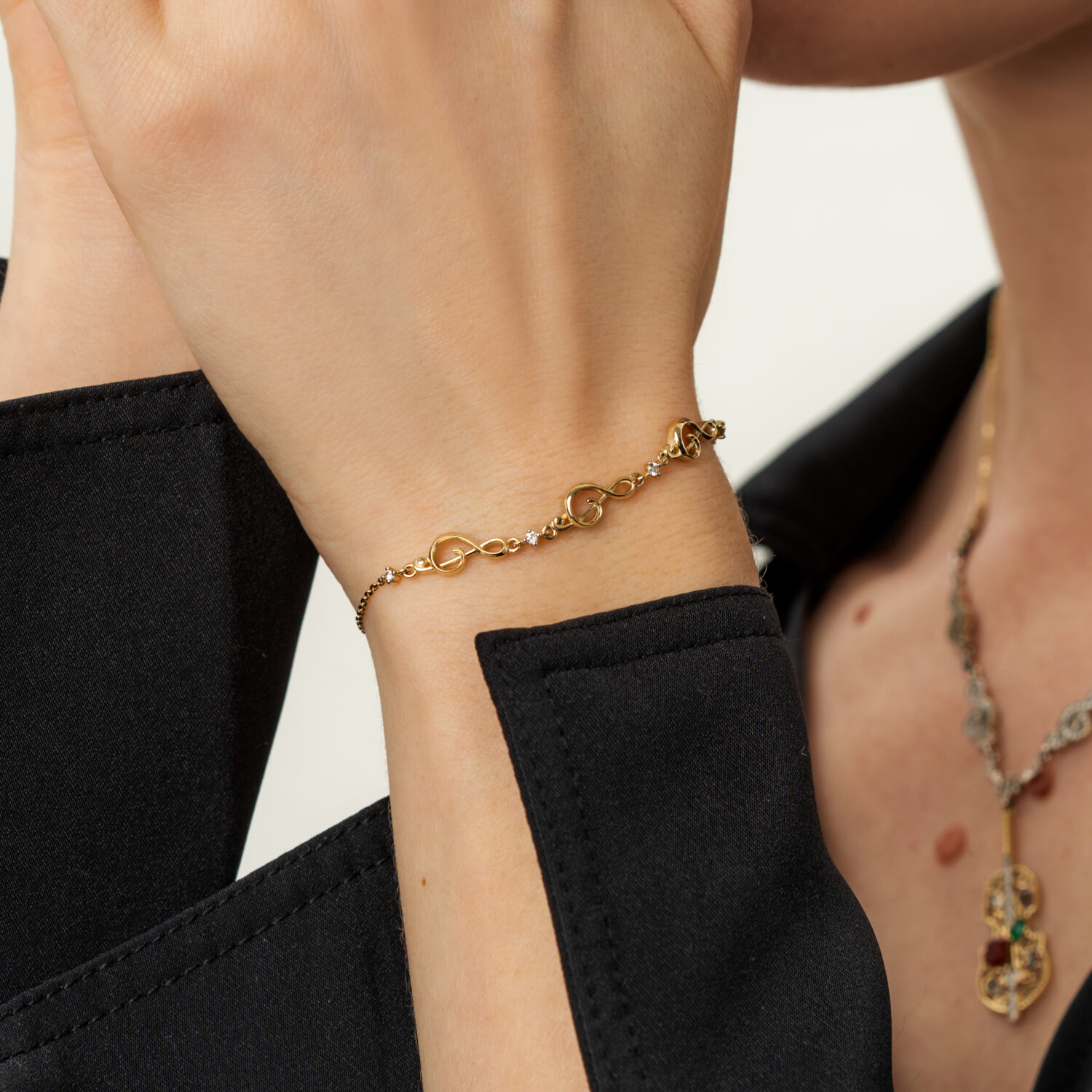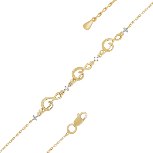 Оригинальный цепочный браслет из жёлтого золота 585 пробы, украшенный сверкающими бриллиантами, — это настоящее воплощение элегантности и стиля